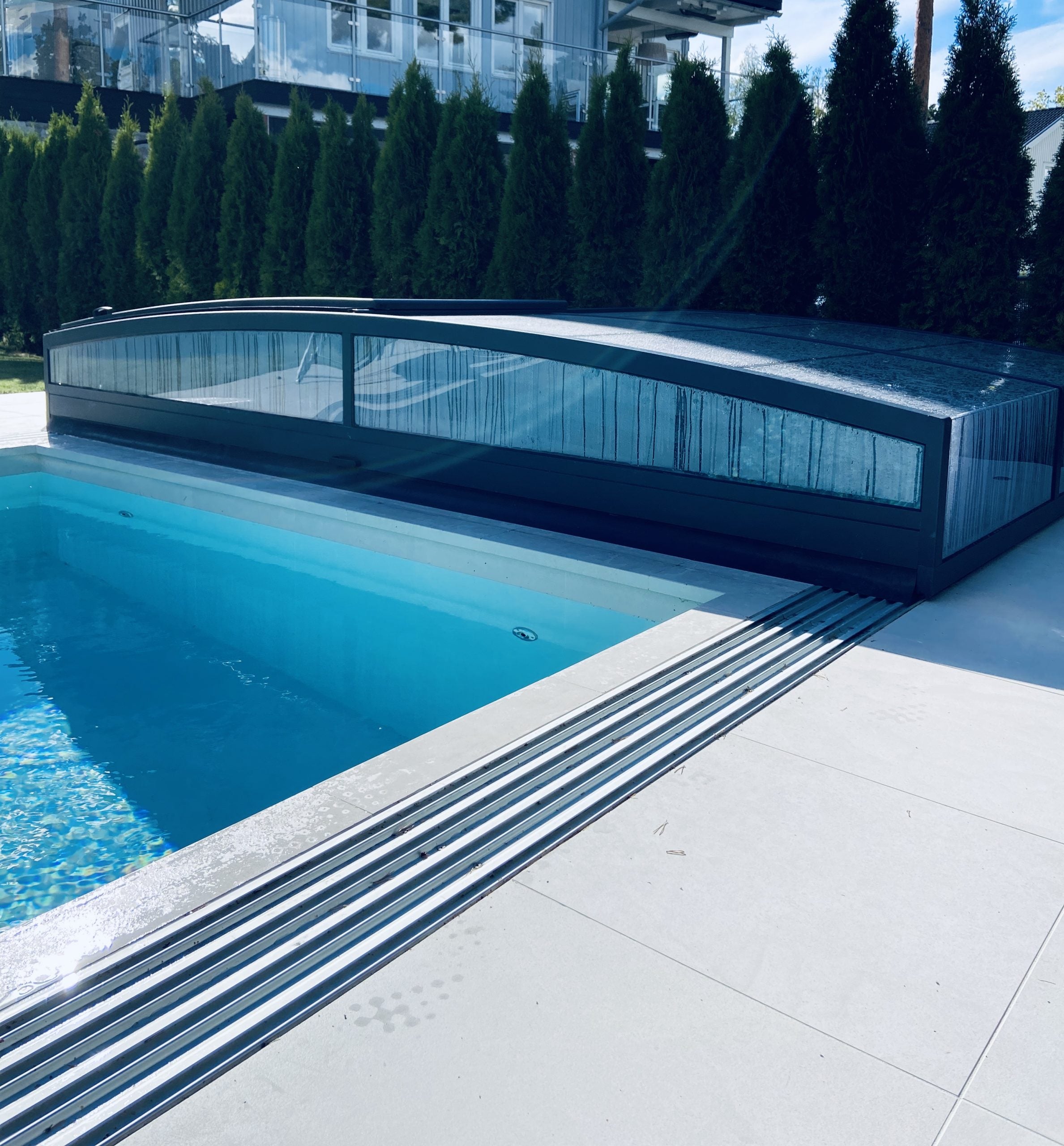 Bild som visar förlängningsskenor till pooltak Leia