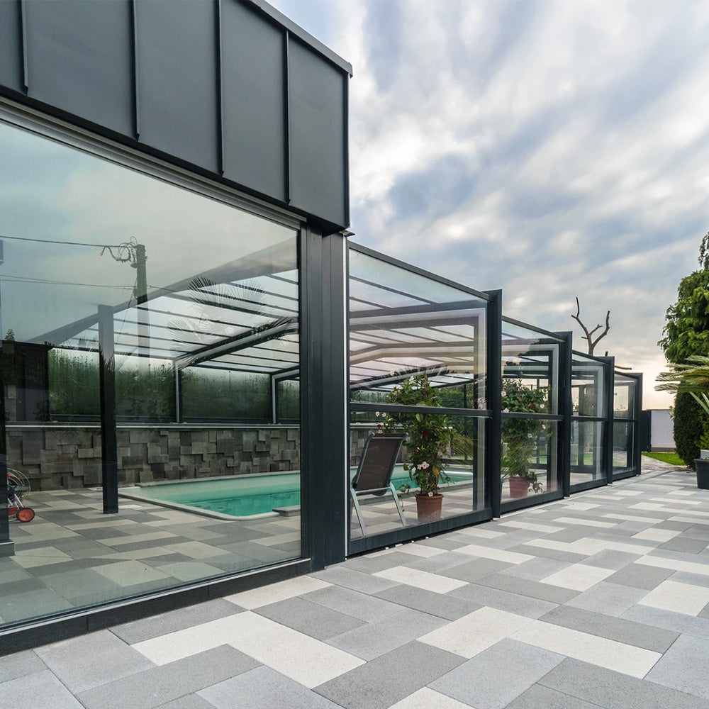 Vega er et rummeligt pooltag med fast installation. Vega samles altid på stedet.